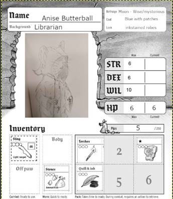 Materials: Mausritter Core Book, One Page Solo Engine (OPSE), Bernpyle #3, Oak Mill Institute by MatthewSteakHam, Knave 2e